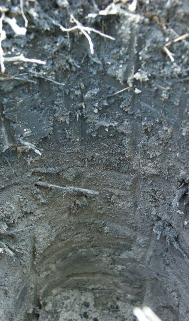 - 18-28cm: Dark sand, slightly crumbled, moist, lots of tree roots; color: dark brown to black