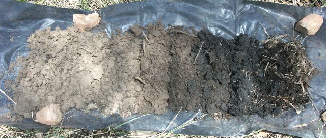 - 0-8cm: Almost decomposed litter mixed with black humus, moist, with grass roots; color: dark brown