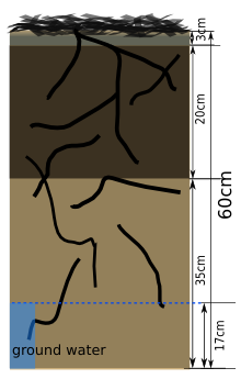 - 3-23cm:Sandy soil with humic compounds, some tree roots; color: dark brown
