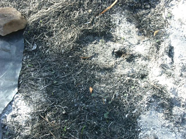 - 0-3cm:Dusty top soil mixed with ashes, some thin grass roots and thicker tree roots